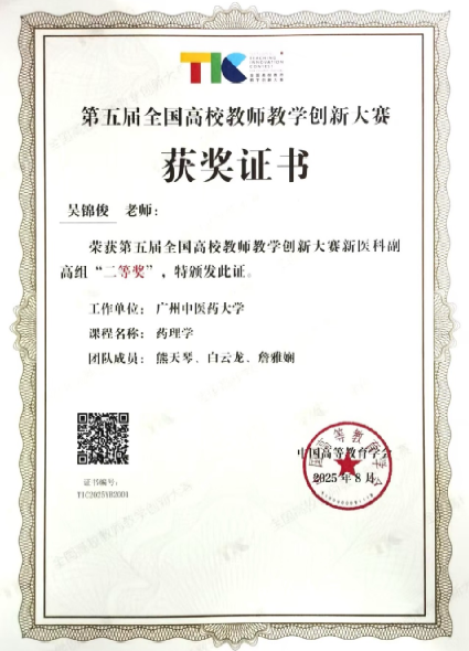 新突破!我院吴锦俊老师团队荣获第五届全国高校教师教学创新大赛二等奖